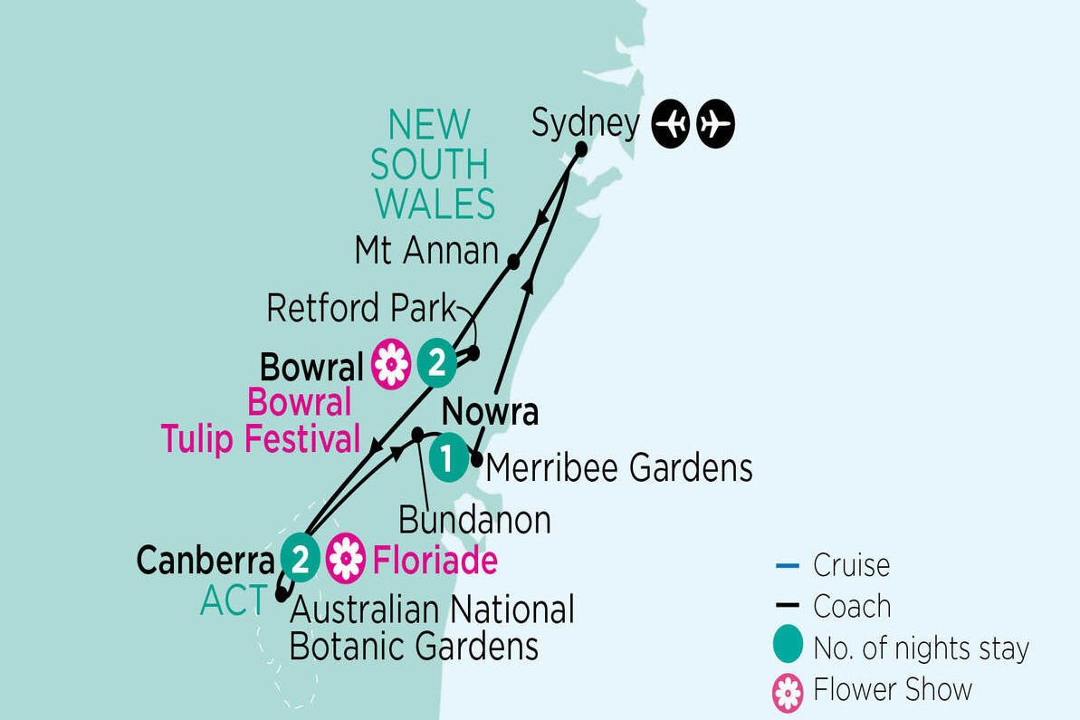 Arrive in Canberra and visit Floriade, the annual flower and entertainment festival. We then enjoy a sightseeing tour of Canberra, culminating in spectacular views as we approach the peak of Mt Ainslie. This afternoon, we will visit the National Gallery of Australia.