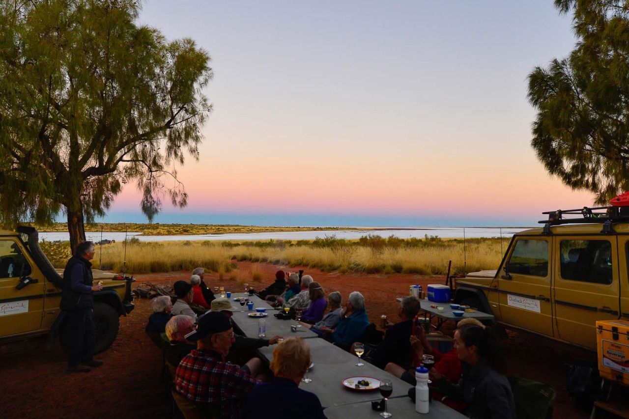 Camp on the banks of Lake Disappointment for an unforgettable sunset over the salt flats