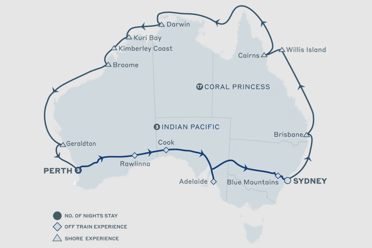 17 Nights Northern Explorer onboard CORAL Princess ® cruise ship from Sydney to Fremantle including all main meals