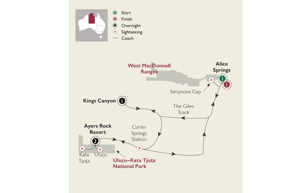 Immerse yourself in the historic Alice Springs Telegraph Station precinct and learn about the overland telegraph line as you discover its historic buildings. Explore the West MacDonnell Ranges on a walk through the dramatic Simpsons Gap. Relish spectacular views across Alice Springs from Anzac Hill before some free time to explore the town or relax by your resort pool. Join your fellow guests at the Tali restaurant for a Welcome Dinner.