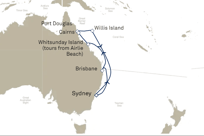 Cairns’ cruise port is situated next to the vibrant city centre. Here you’ll find extensive shopping and dining experiences, and direct access to the Great Barrier Reef and World Heritage Tropical Rainforests.