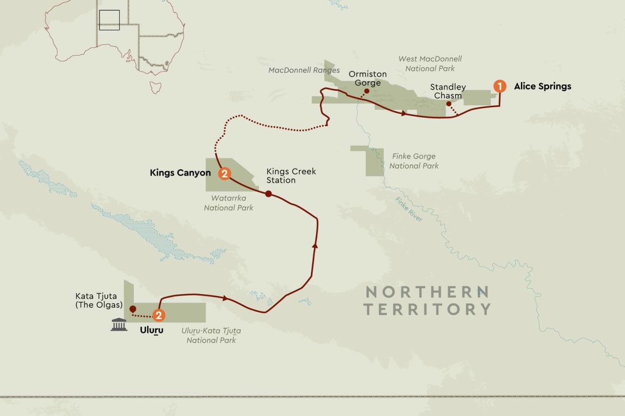 After breakfast enjoy the morning at your leisure. You will then be transferred to the airport or back to Alice Springs.