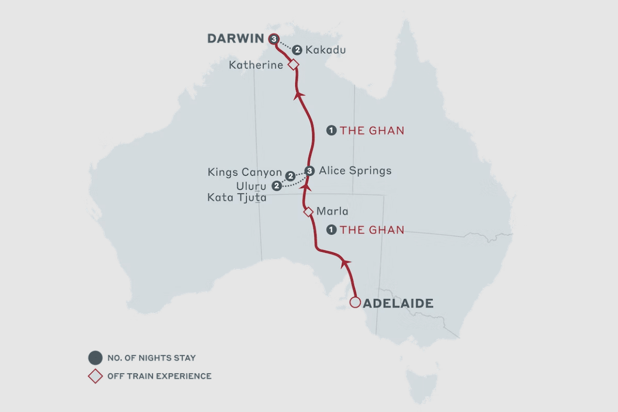1 night aboard The Ghan, Adelaide to Alice Springs,