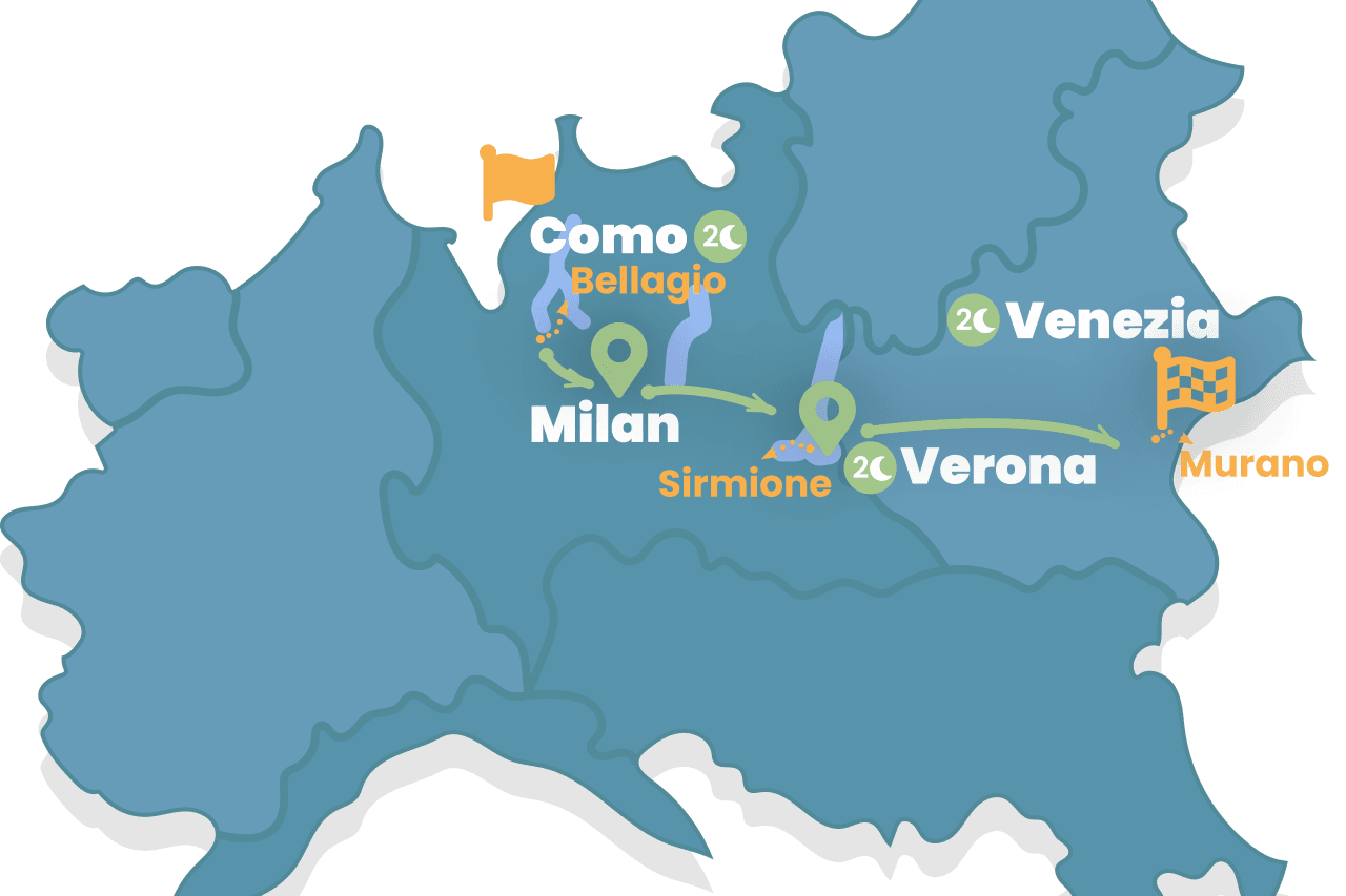 Como, Verona and Venice Escorted Small Group by Train. Explore the breathtaking lakes located in the North of Italy by characteristic Regional Trains. A 7-days tour to discover authentic locations in North Italy.